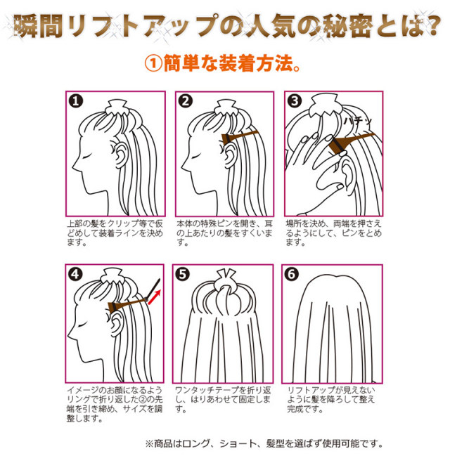 ・メイク以上、整形未満、付けるだけで見た目年齢を上げているタルミが解消されます。 ・引き上げたいところの髪をピンで固定してテープで位置を調整するだけの簡単装着。く ・髪に隠れて目立たないデザインだから誰にも気づかれずにリフトアップできます。 ・髪をしっかりホールドする形状のピンを使用しているからずれにくい。 ・テープ部分は、フィット感の良いソフトな素材を使用。付けているのを忘れてしまいそうな軽さです。 ・目の下や、頬のタルミ、ほうれい線がなくなるとフェイスラインがスッキリ若返ります。 ・昼でも夜でもいつでもどこでもリフトアップ! ※当ウェブサイトに掲載されているコンテンツ(文書、画像、映像等)は、著作権法、関連条約・法律で保護されています。 これらのコンテンツについて、権利者の許可なく複製、転用等する事は法律で禁止されています。